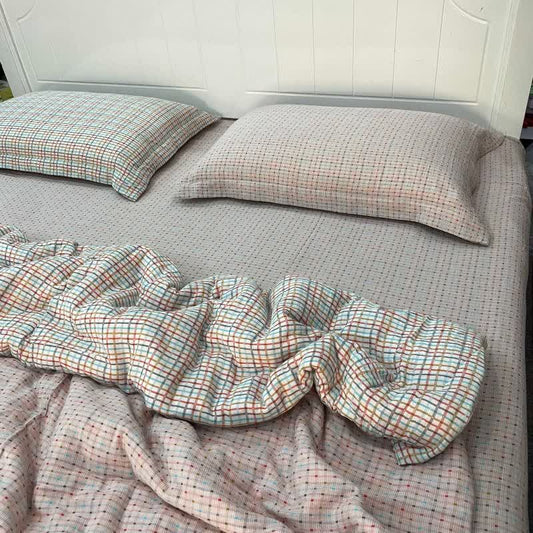 Buntes Bettwäsche-Set aus Baumwollgaze mit Karos und Punkten (4-teilig)