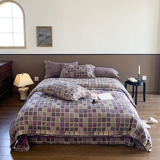 Jacquard-Bettwäscheset aus Baumwollgaze im Vintage-Stil (4-teilig)
