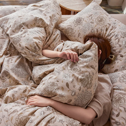 Bettwäscheset mit Bettbezug aus gebürsteter Baumwolle im Pastoralstil (4-teilig)