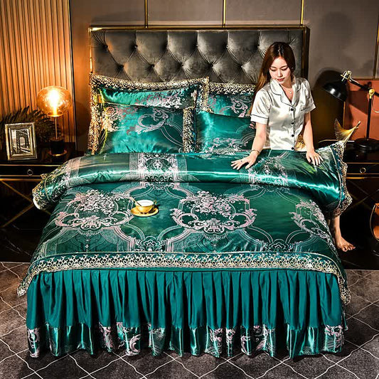 Bettwäscheset mit Satin-Bettrock und Blumenmuster (4-teilig)