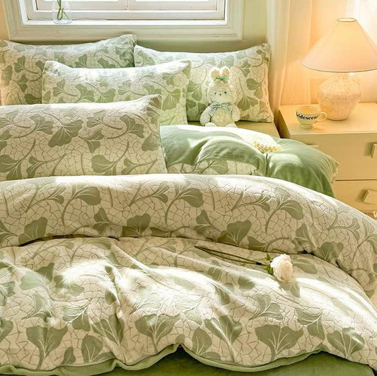 Weiches Jacquard-Bettwäscheset mit Ginkgoblättern (4-teilig)