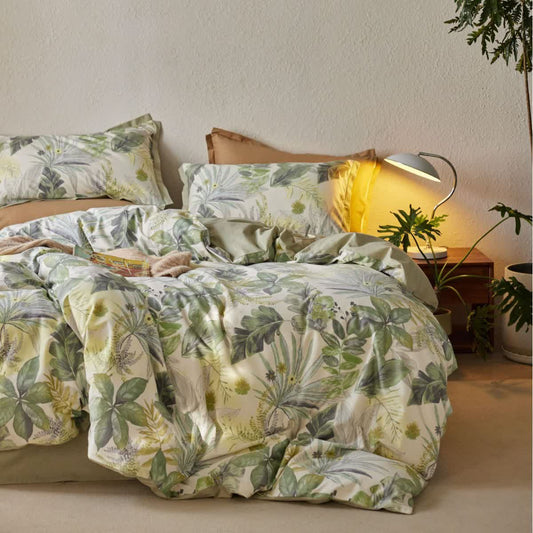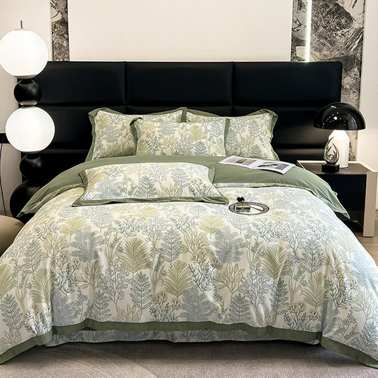Luxuriöses Bettwäscheset aus Baumwolle mit üppigen Blättern (4-teilig)
