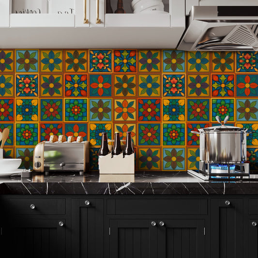 Bunte Talavera-Fliesen-Wandaufkleber aus PET-Schaum