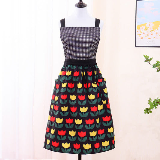 Niedliche, atmungsaktive Schürze im pastoralen Stil mit Blumenmuster