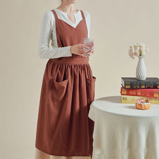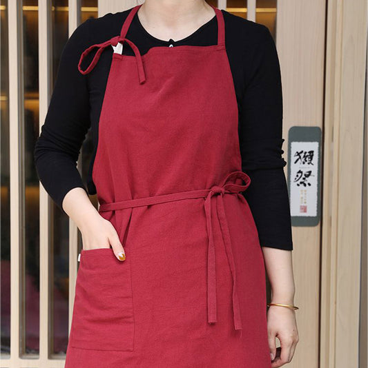 Schlichte Baumwoll-Leinen-Schürze mit Taschen