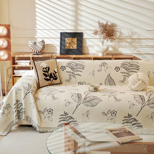 Sofa-Überwurfdecke aus Chenille mit ländlichen Blättern