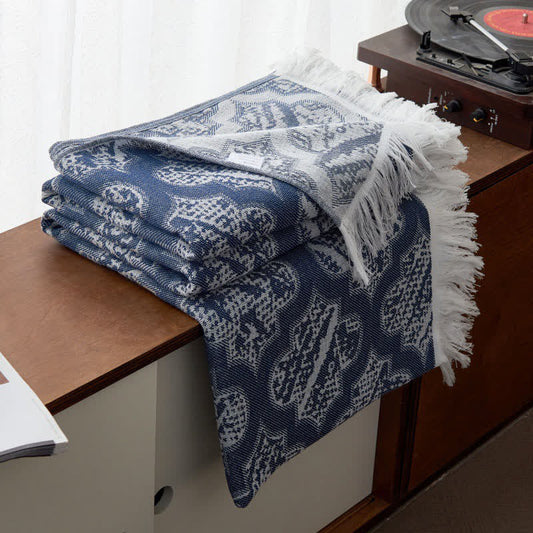 Wendesteppdecke aus Baumwolle mit Quasten im Retro-Muster