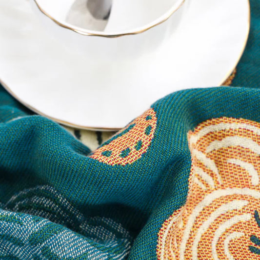 Wendbare Baumwollgazedecke mit Quasten und leuchtendem Blumenmuster