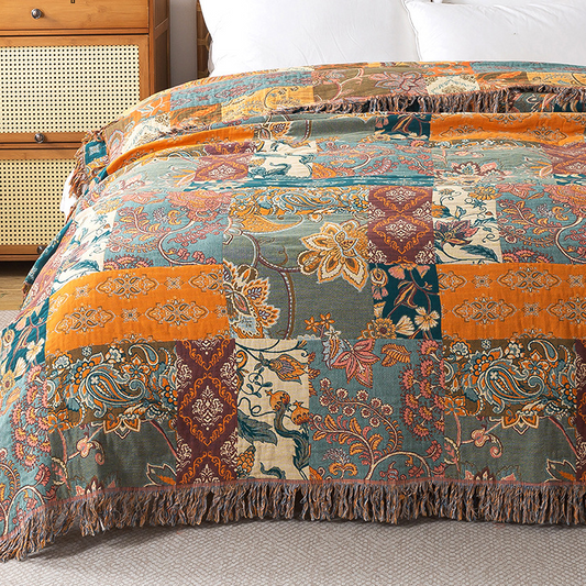 Elegante Wendesteppdecke aus Gänse-Baumwollgaze mit Quasten