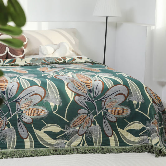 Wendbare Steppdecke aus Baumwollgaze im Waldstil mit Quasten