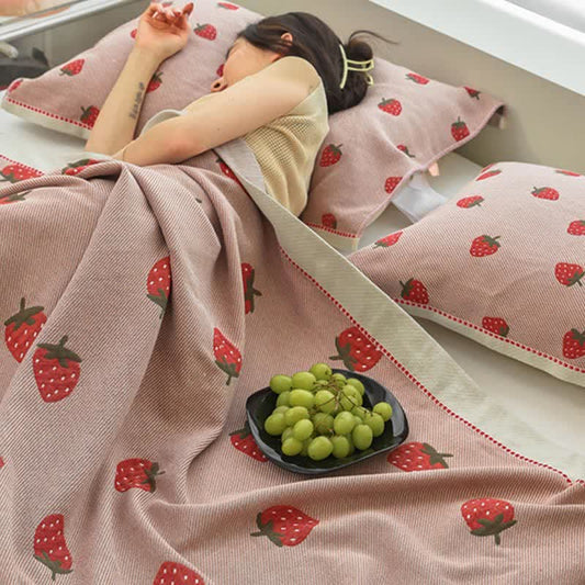 Atmungsaktive Steppdecke aus Baumwollgaze mit Erdbeeren in Rosa