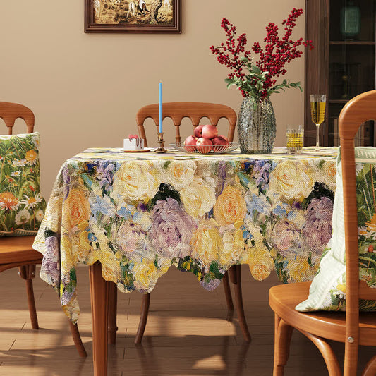 Jacquard-Tischdecke mit gewelltem Rand und Blumenmuster im Ölgemälde-Stil