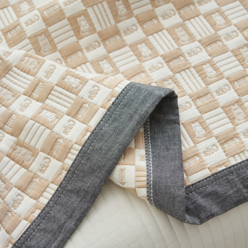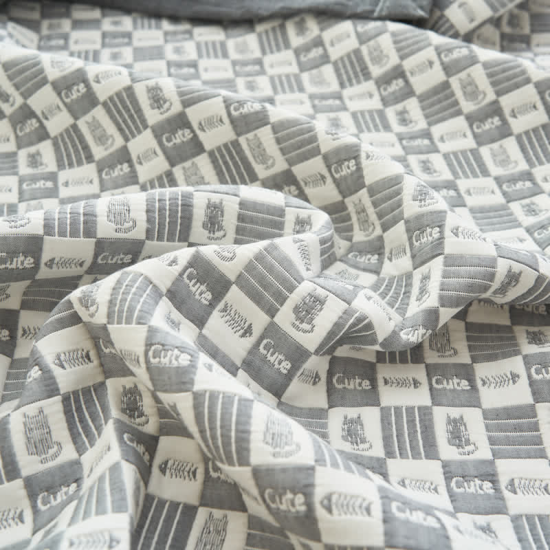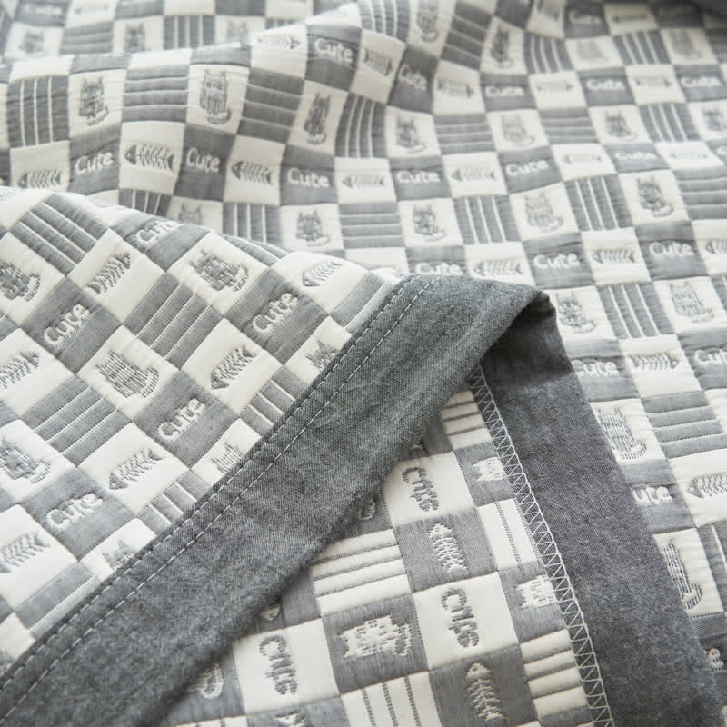 Diese Steppdecke strahlt Eleganz und Tiefe aus und wertet mit ihrer strukturierten Optik und den fühlbaren Cartoon-Katzen- und Fischgrätenmustern die Ästhetik des Raumes auf. Aus reiner Baumwolle mit drei Gazeschichten gefertigt, sorgt diese Bettwäsche für einen angenehmen Temperaturausgleich, verhindert Überhitzung in wärmeren Nächten und spendet in kühleren Jahreszeiten wohlige Wärme.