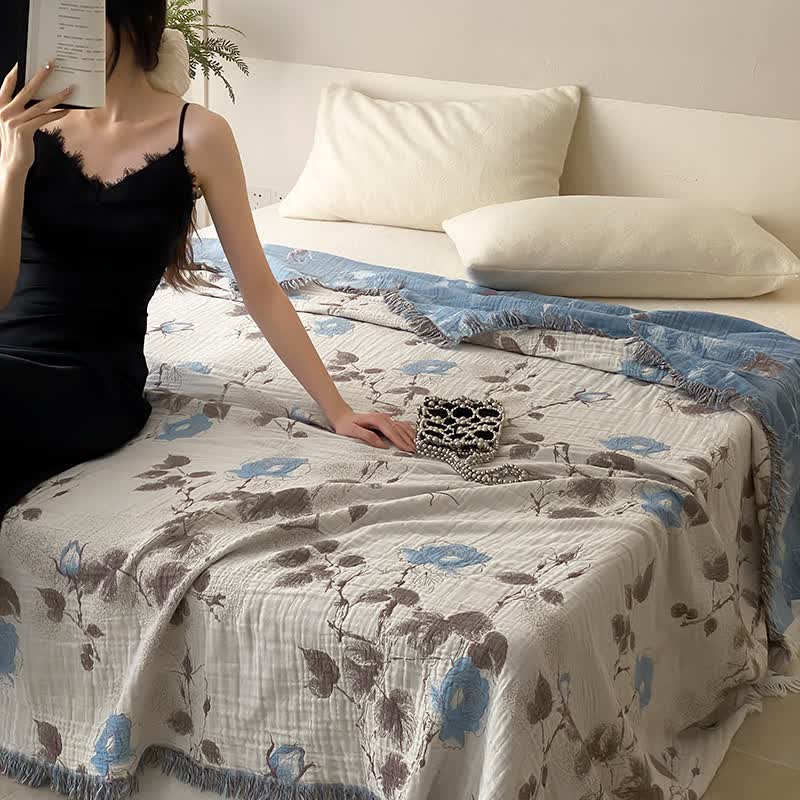 Bequeme Decke aus vierlagiger Baumwollgaze mit Quaste