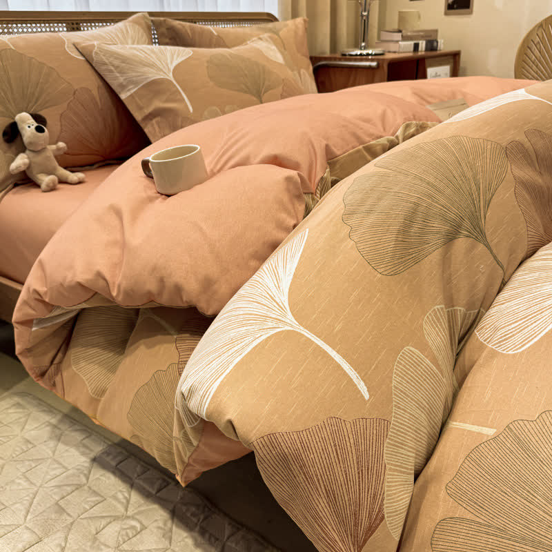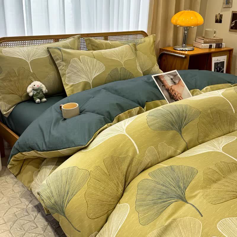 Stil 6: 1 Bettlaken mit Ginkgoblatt-Muster + 2 Kissenbezüge