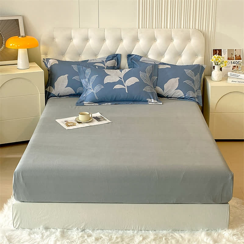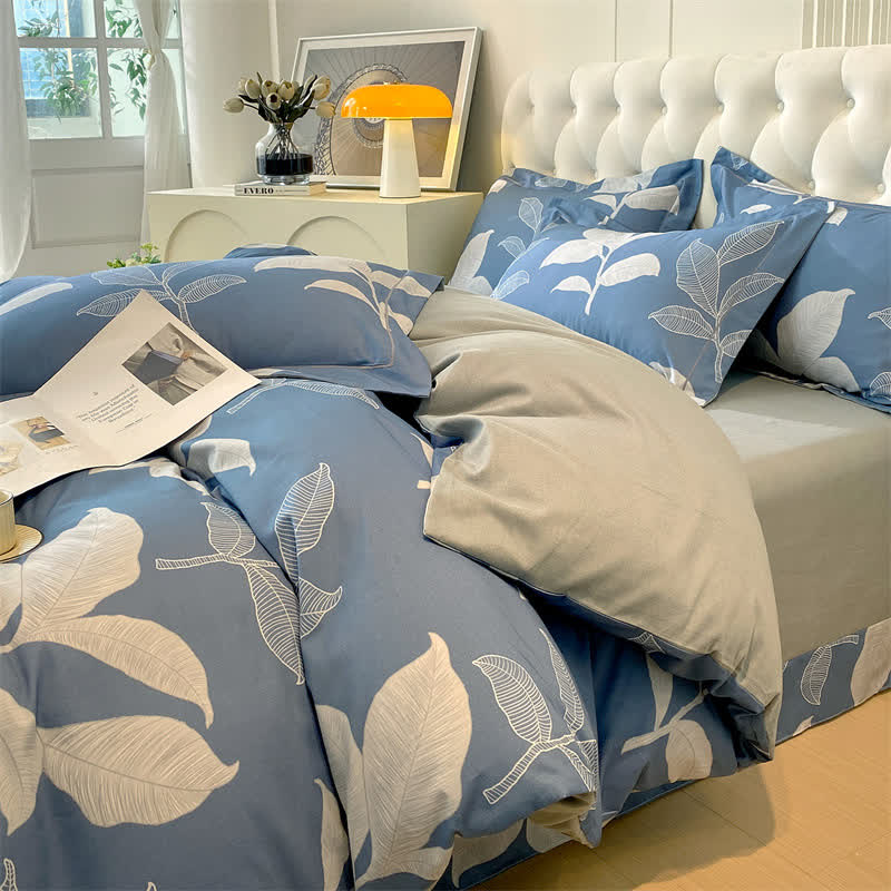 Bettwäscheset aus gebürsteter Baumwolle mit botanischem Motiv (4-teilig)