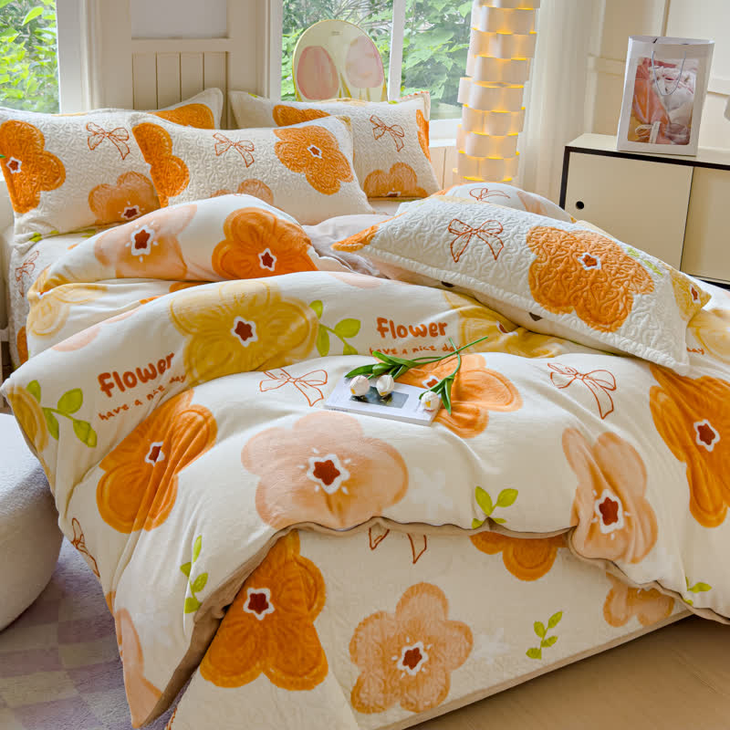 Bettwäscheset aus Samt mit leuchtenden Blumen (4-teilig)