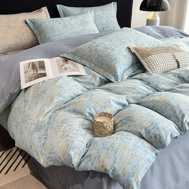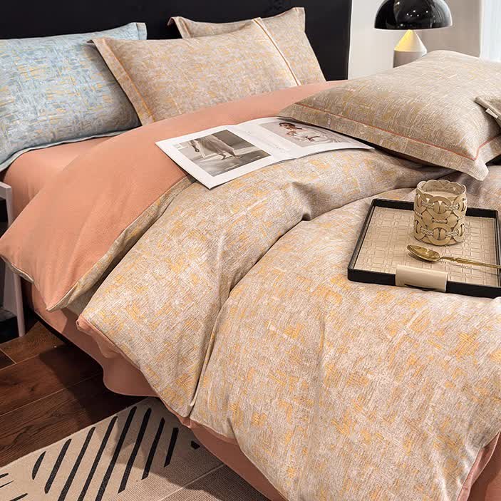 Dieses Bettwäscheset besteht aus reiner Baumwolle, die sowohl bequem als auch zart ist und sich durch ihre weiche, glatte Textur angenehm auf der Haut anfühlt. Der Bettbezug ist wendbar: Version A besticht durch leuchtende Farben, Version B durch einen minimalistischen, klaren Stil. Drehen Sie den Bezug um und erleben Sie ein frisches, neues Aussehen und Gefühl.