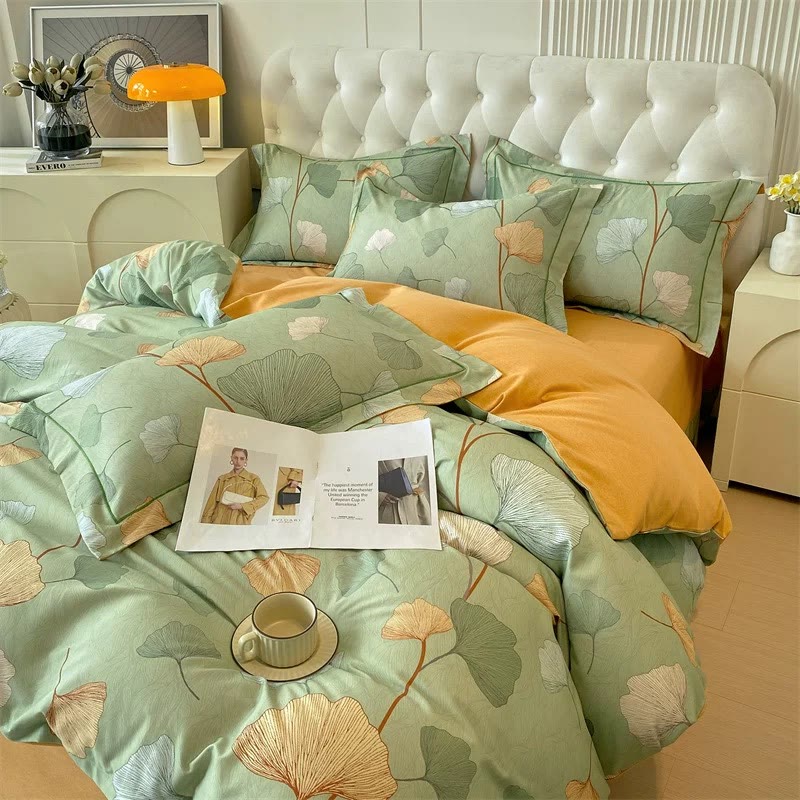 Bettwäscheset mit Ginkgoblättern aus gebürsteter Baumwolle (4-teilig)