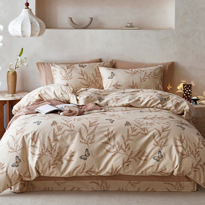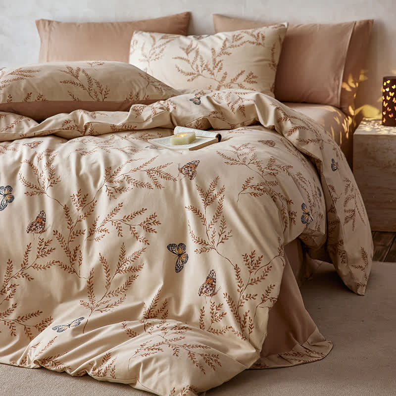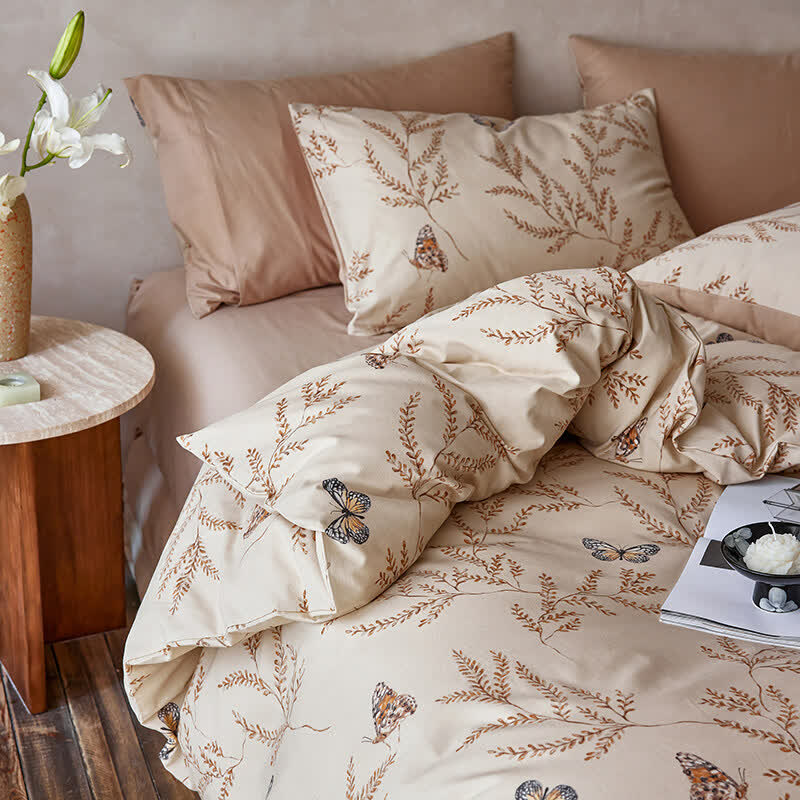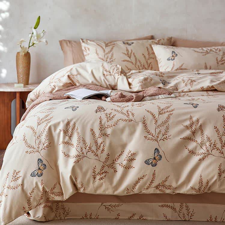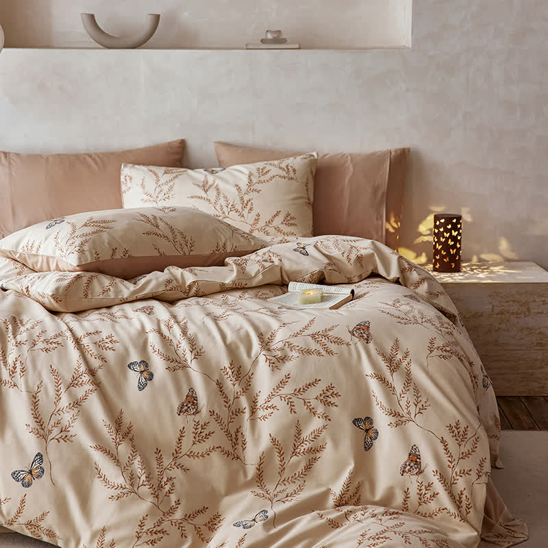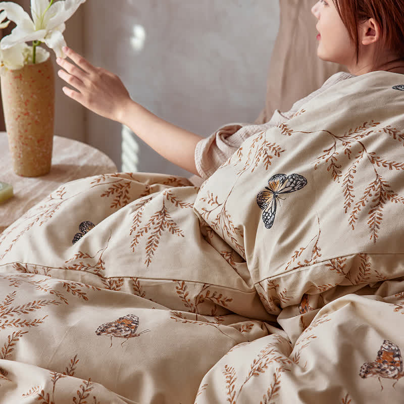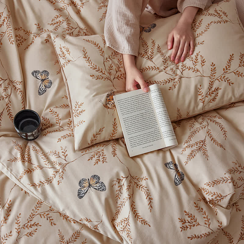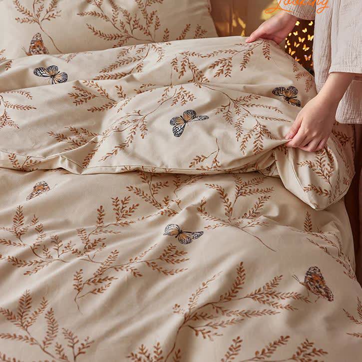 Bettwäscheset mit Schmetterlingen im Pastoralstil aus gebürsteter Baumwolle (4-teilig)