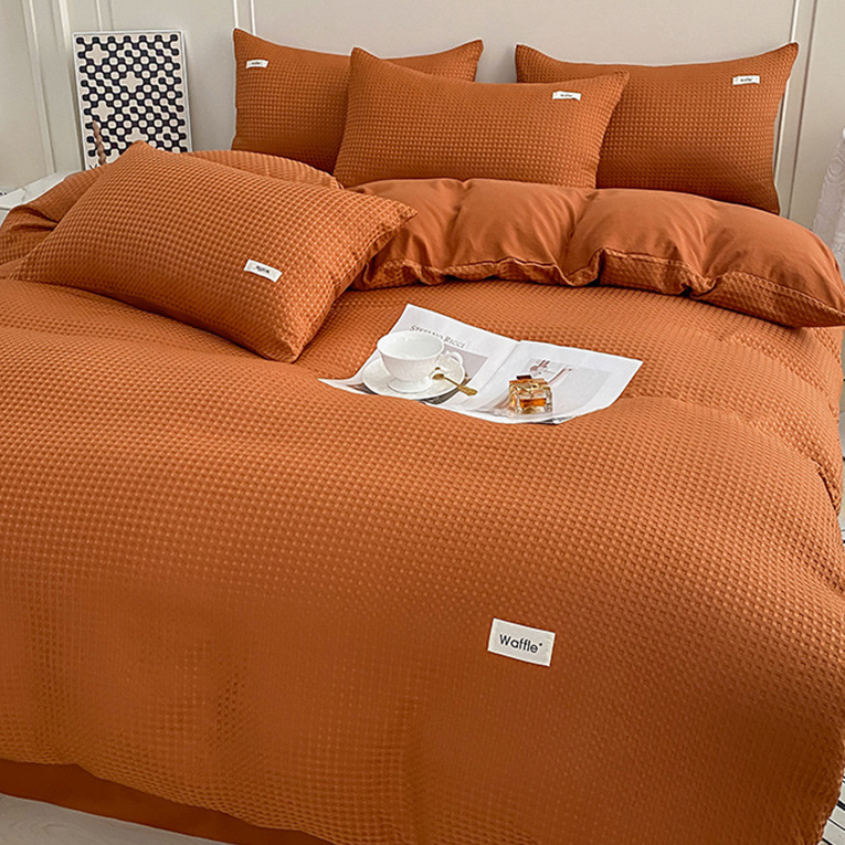 Bettwäscheset mit Waffelstruktur und einfarbiger Optik (4-teilig)