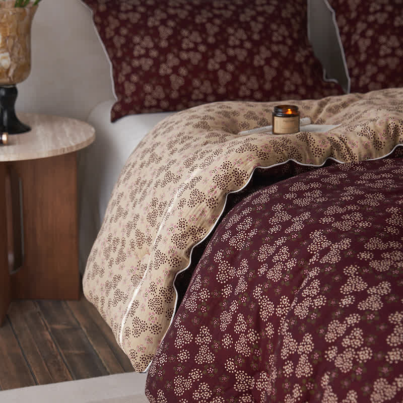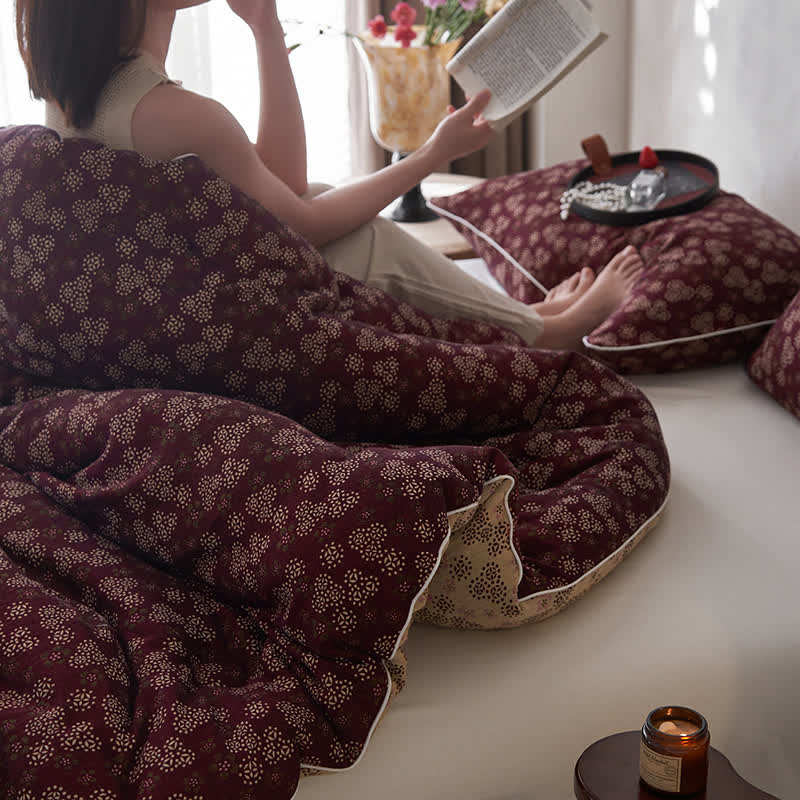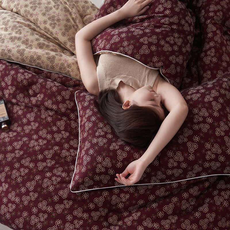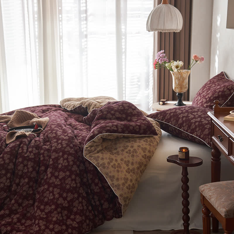 Unsere Steppdecke aus hochdichtem Baumwollgarn ist strapazierfähig und ästhetisch und pillingresistent. Jeder Faden wird sorgfältig verarbeitet, um seine natürliche Textur zu bewahren. Die Füllung aus hochwertigem Kaschmir und Fasern ist leicht, widerstandsfähig und speichert effektiv die Luft für einen angenehmen Schlaf.