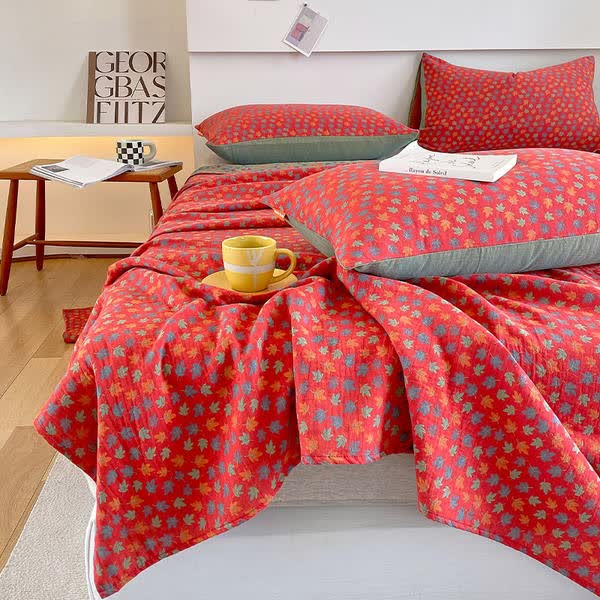 Mit ihrem faszinierenden Ahornblatt-Print verleiht diese Bettdecke Ihrem Schlafzimmer einen Hauch von natürlicher Anmut und Eleganz. Dank ihrer Vielseitigkeit ist sie ganzjährig kombinierbar und vereint leichte Wärme in den kalten Monaten mit luftigem Komfort bei heißem Wetter. Damit ist sie ein vielseitiges Bettzeug.