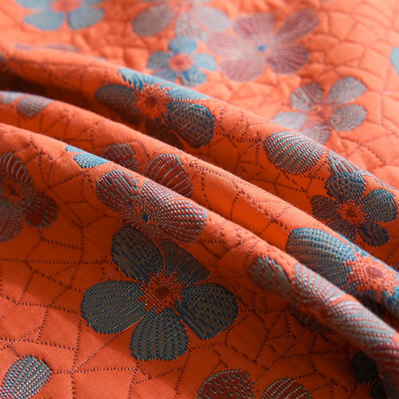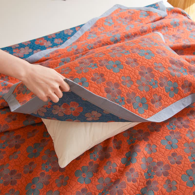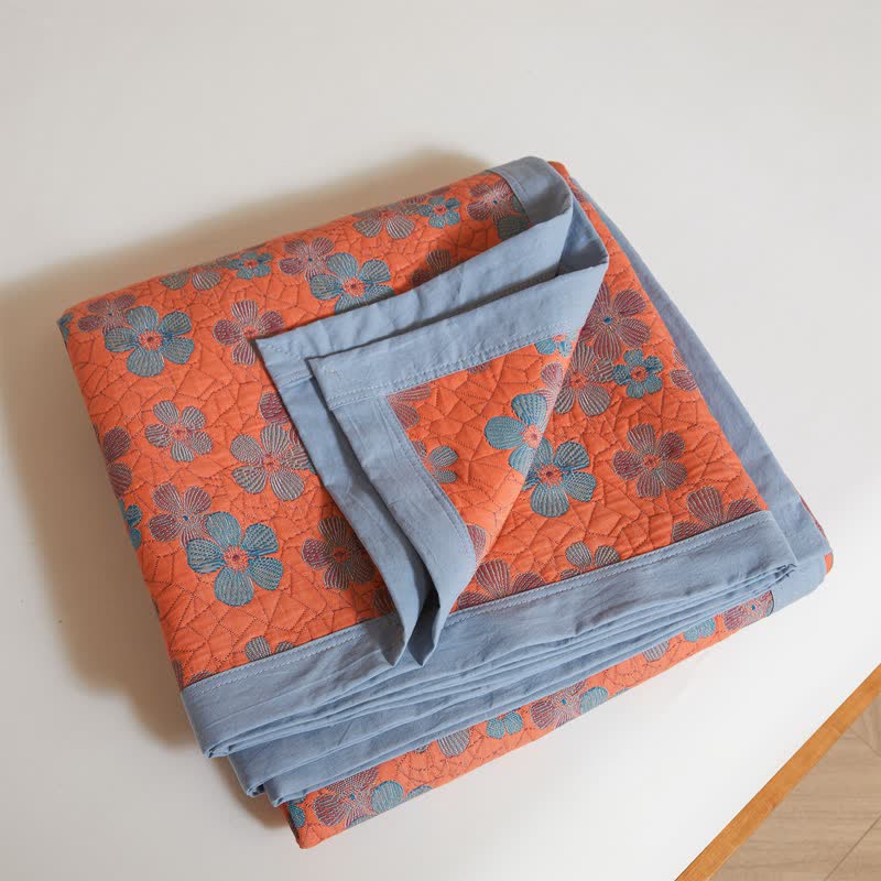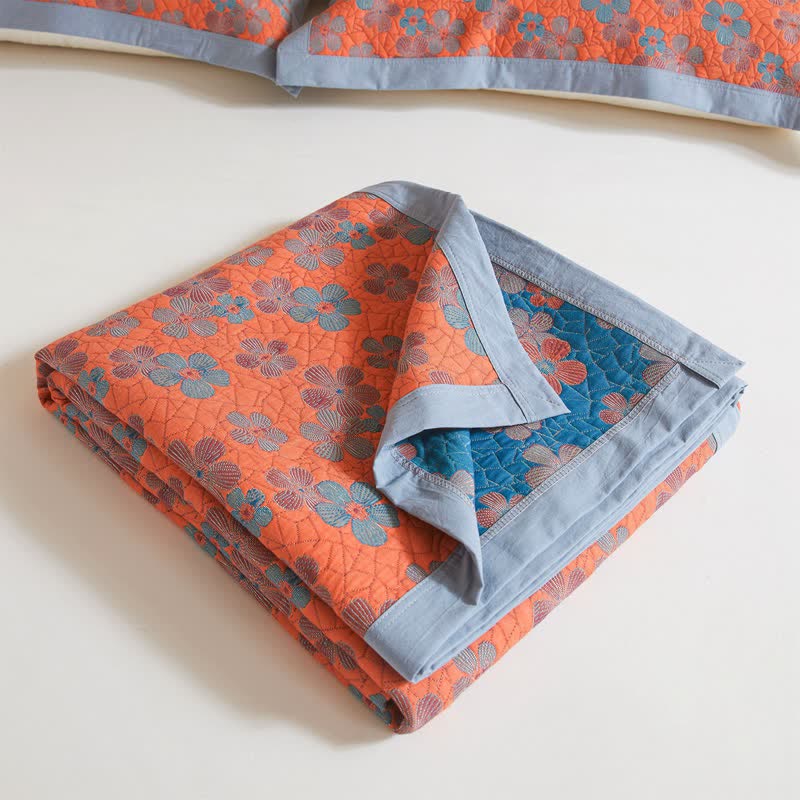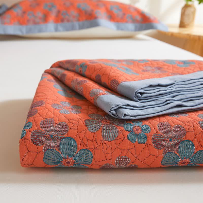 Dreilagige Steppdecke aus Baumwollgaze mit blühenden Blumen