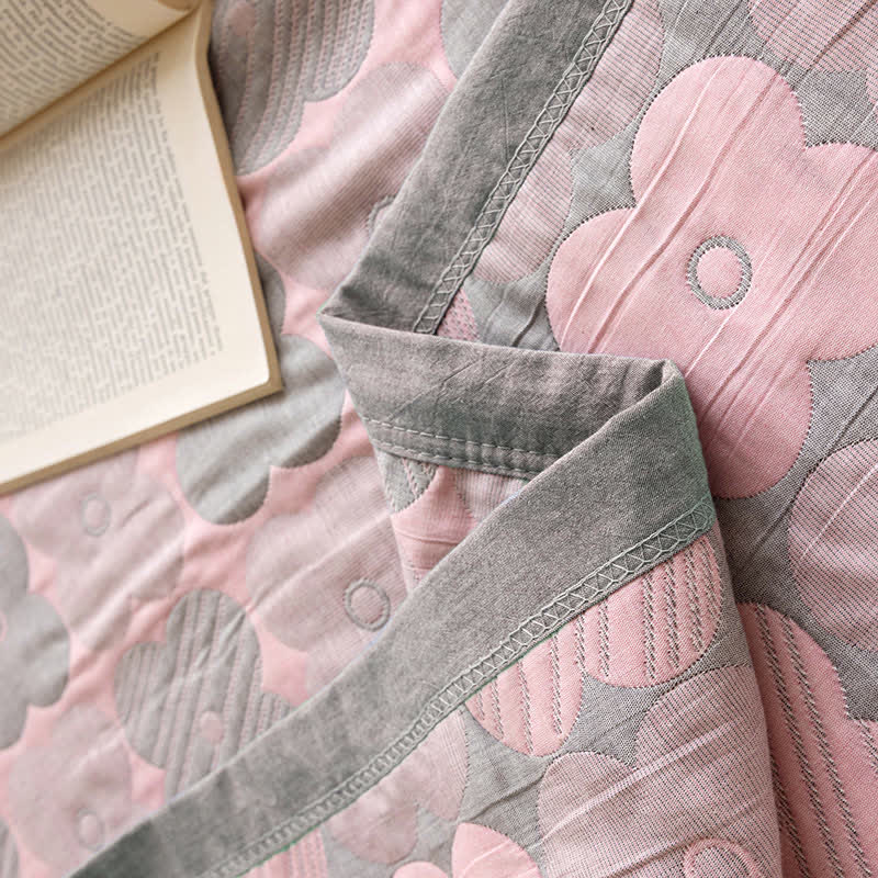 Dreilagige Steppdecke aus Baumwollgaze mit lebendigen Blumen