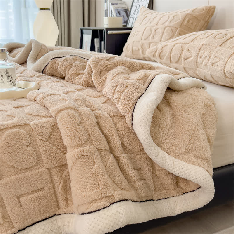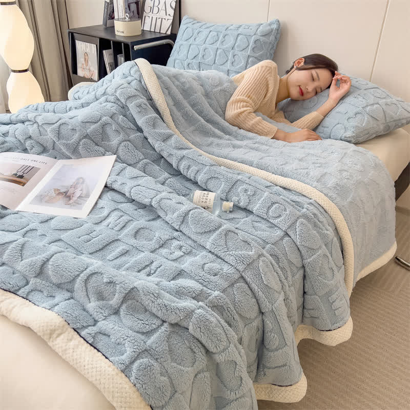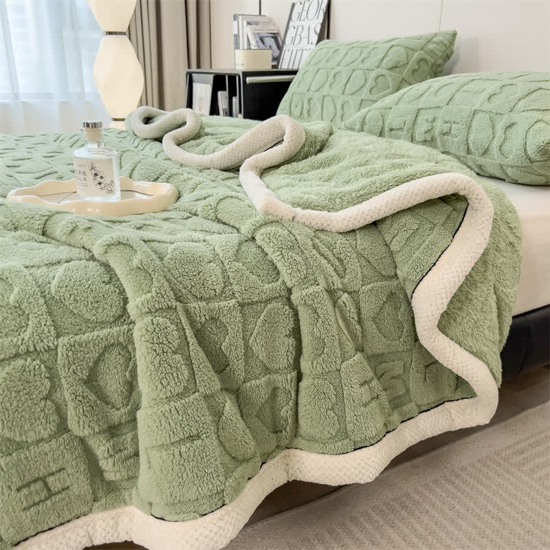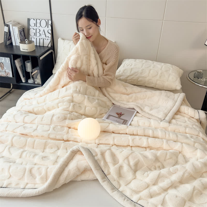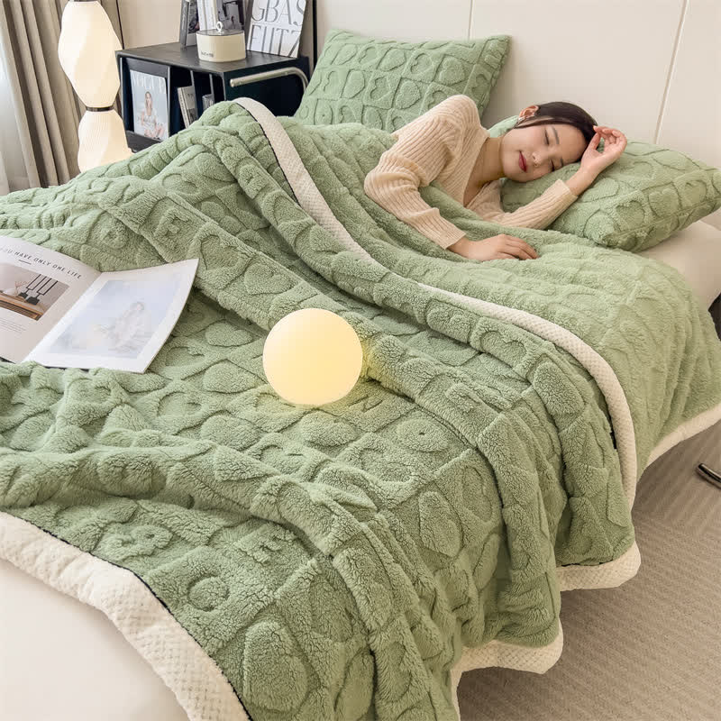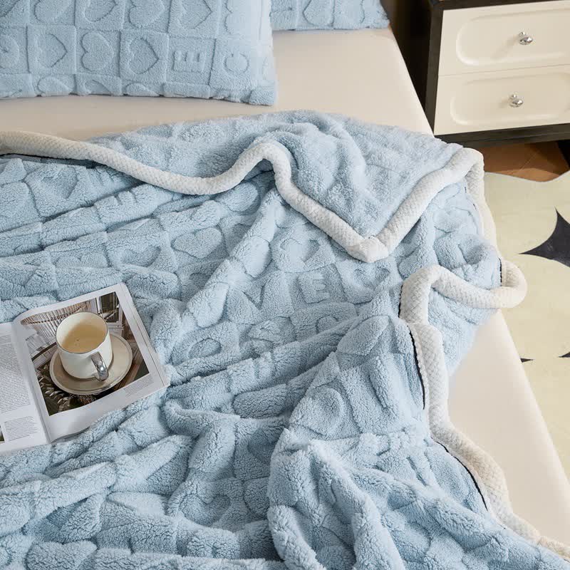 Das markante herzförmige Muster schafft eine gemütliche Atmosphäre, die schlicht und stilvoll ist, sich nahtlos in verschiedene Einrichtungsstile einfügt und Kinder und Erwachsene gleichermaßen anspricht. Der hochwertige Plüschstoff bietet eine glatte Textur, die die Haut sanft pflegt und gleichzeitig ein wohliges Wärmegefühl vermittelt.