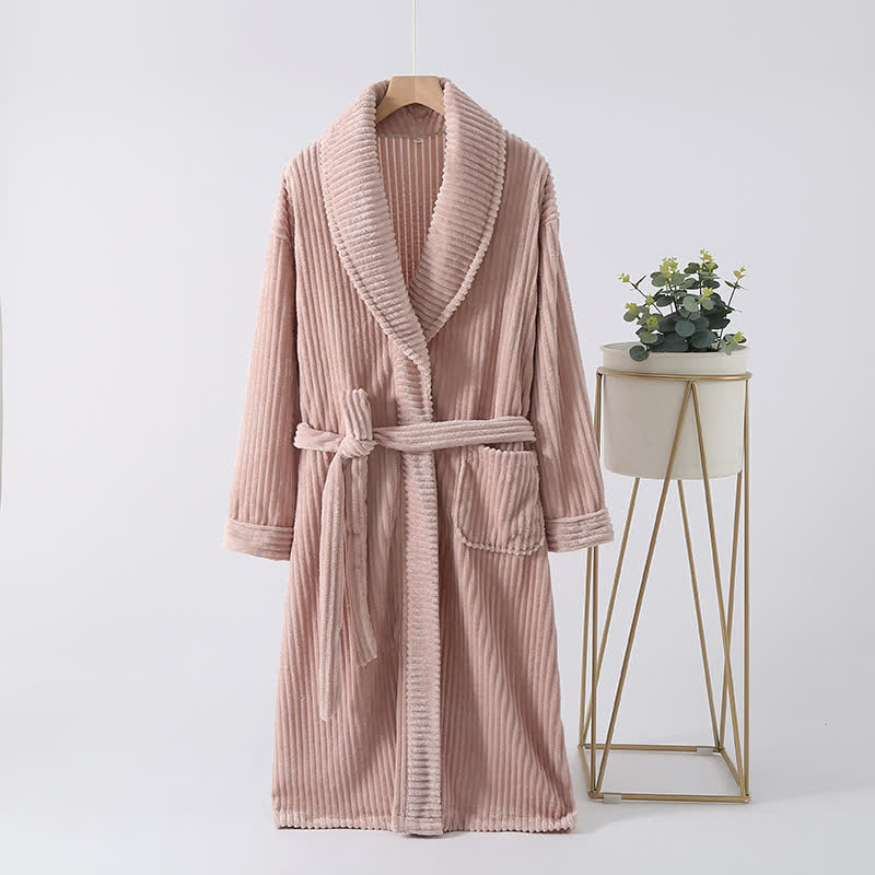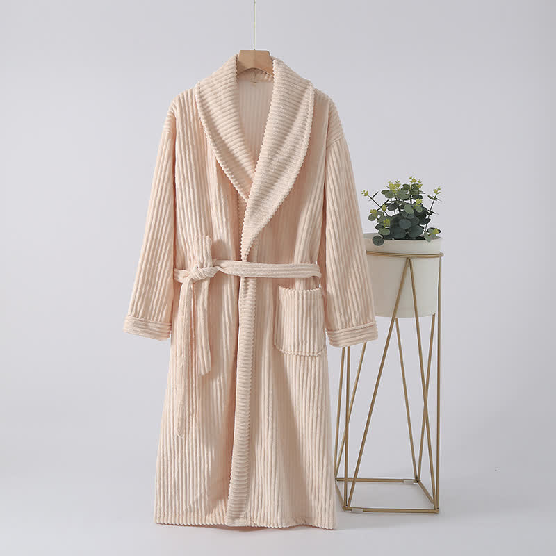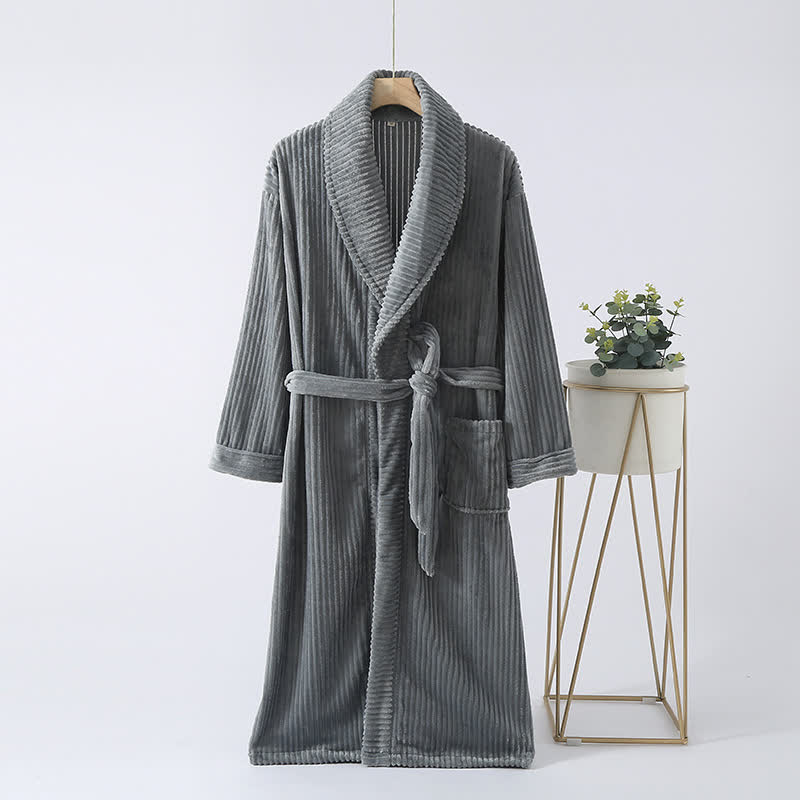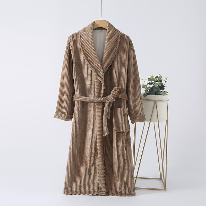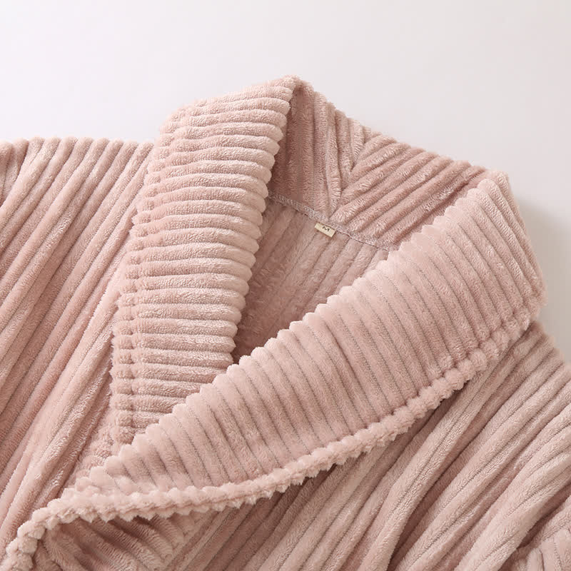 Einfarbiger Bademantel aus Flanell mit vertikalen Streifen