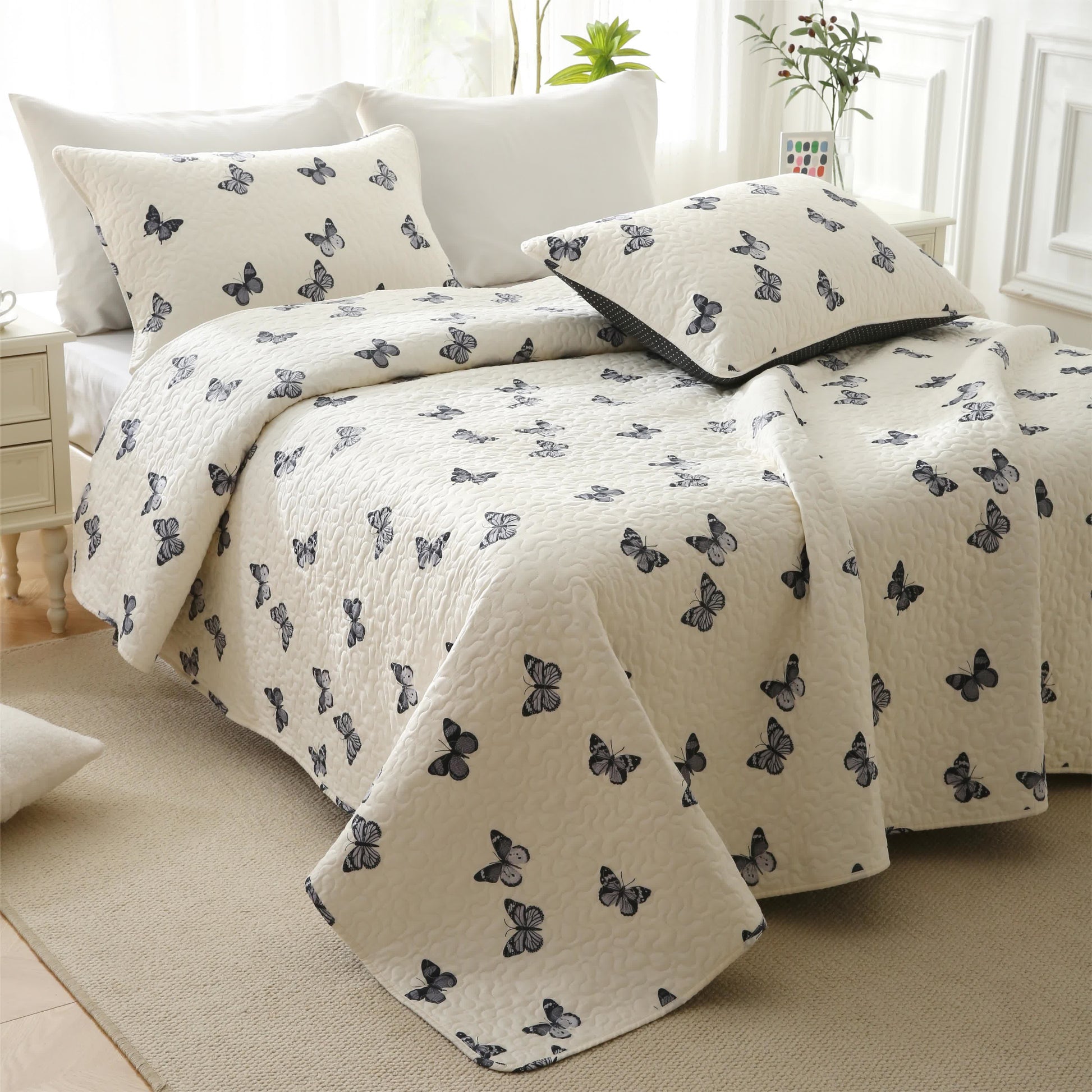 Elegante gesteppte Bettwäsche aus reiner Baumwolle mit Schmetterlingsmotiv