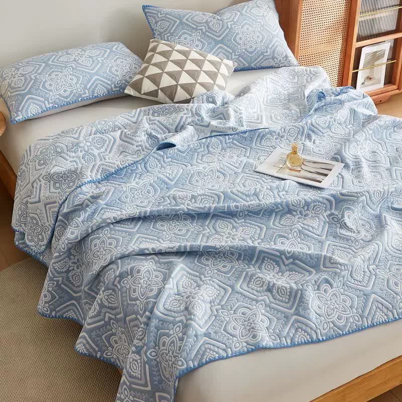 Die elegante Wendedecke aus doppellagiger Baumwollgaze mit Blumenmuster besticht durch zarte Blumenmuster auf atmungsaktiver doppellagiger Baumwollgaze. Weich, leicht und wendbar verleiht sie Ihrem Schlafzimmer das ganze Jahr über einen Hauch von Eleganz und Komfort.