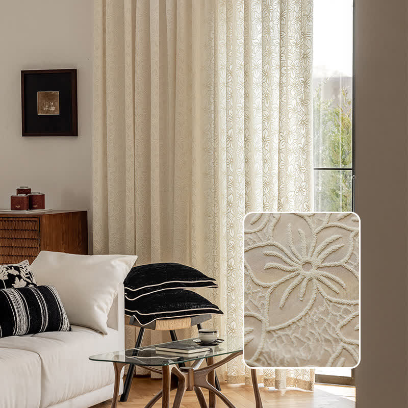 Die transparenten Gaze-Vorhänge im französischen Vintage-Stil mit Blumen- und Blattmotiven sind charmante, leichte Fensterdekorationen, die zeitlose Eleganz ausstrahlen. Mit zarten Blumen- und Blattmustern sind diese transparenten Vorhänge aus weichem Gazestoff gefertigt, der sanftes Licht durchlässt und gleichzeitig die Privatsphäre schützt. Ihr Vintage-inspiriertes Design verleiht jedem Raum einen Hauch rustikaler Eleganz und macht sie perfekt für eine gemütliche, romantische Atmosphäre in Wohnzimmern, Schlafzimmern oder Ferienhäusern.