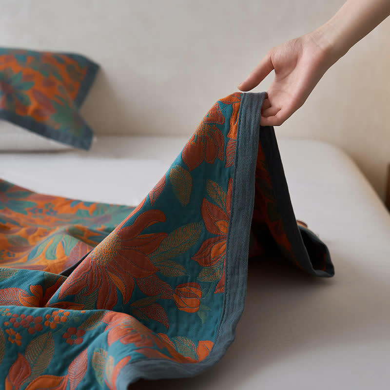 Garngefärbte Steppdecke „Blooming Flower“ aus reiner Baumwolle