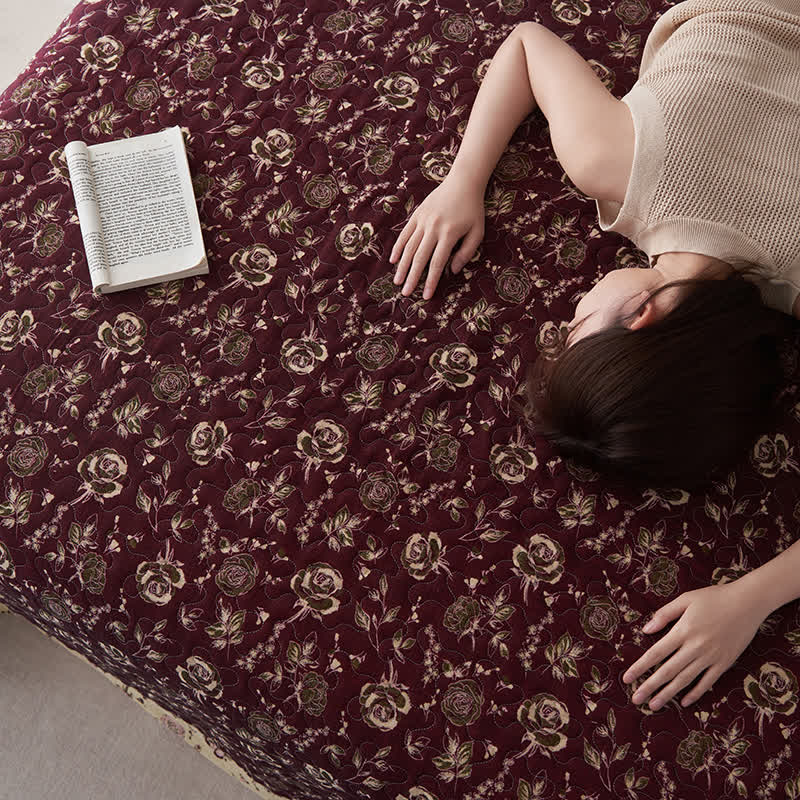 Gesteppte Tagesdecke aus Baumwollgaze im Retro-Rose-Design