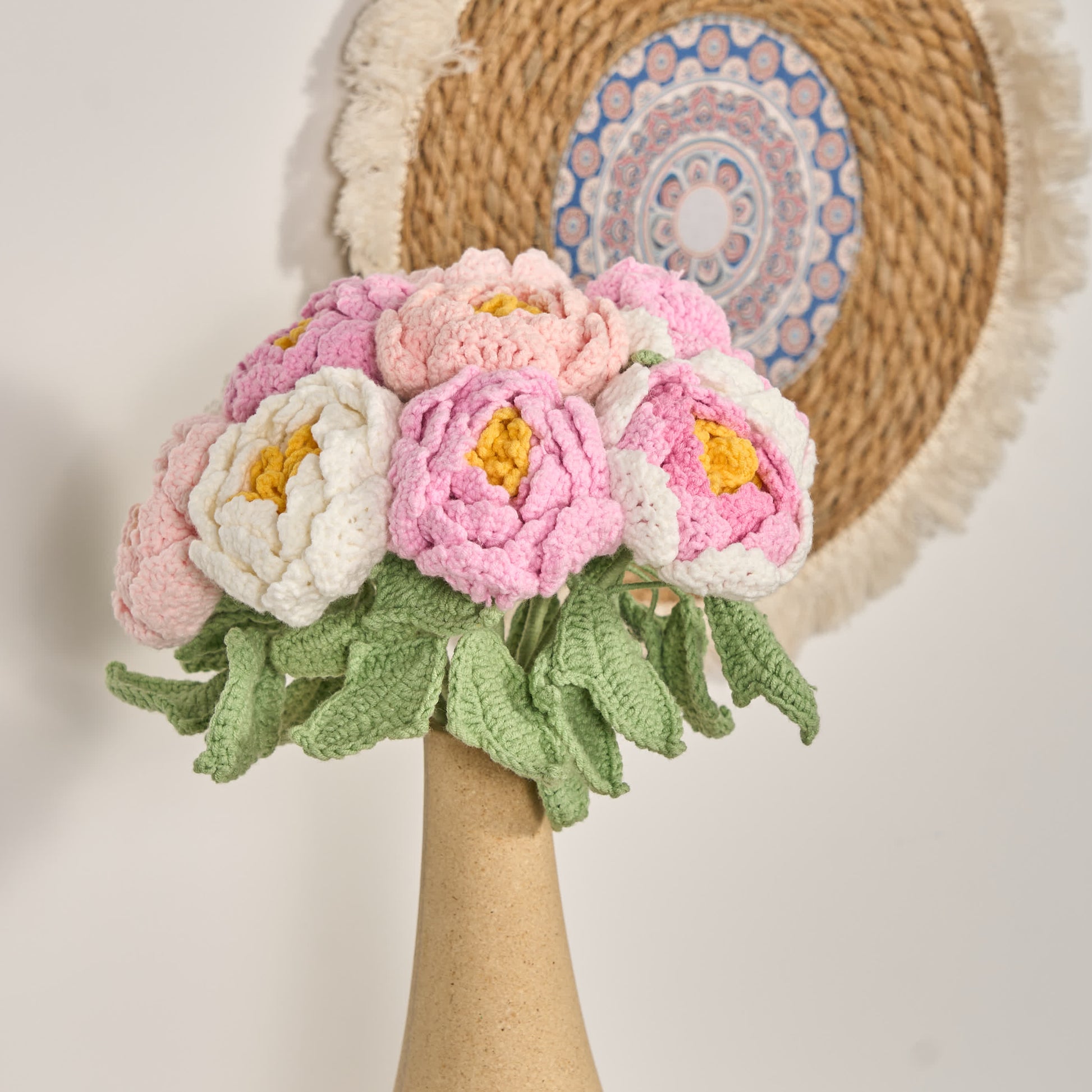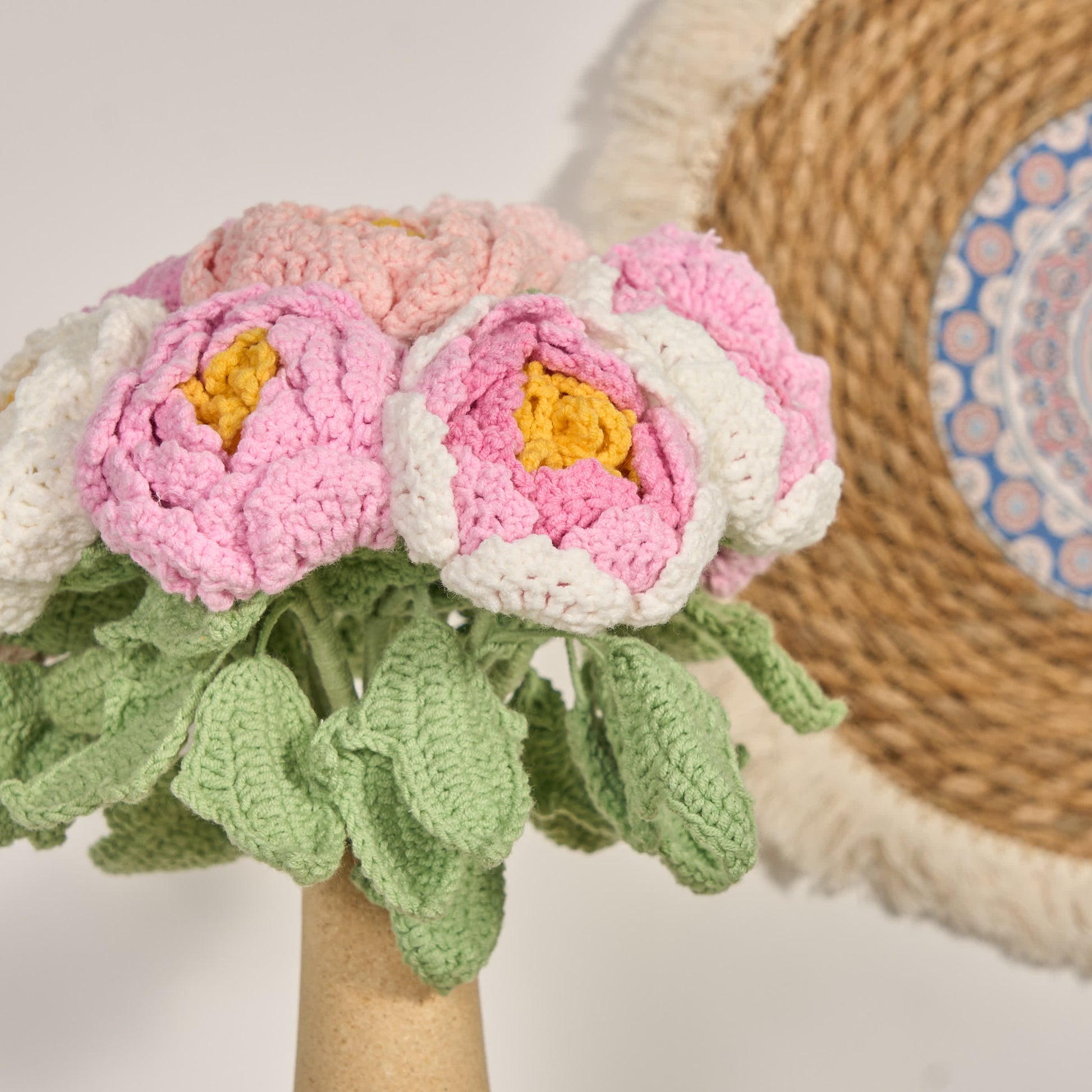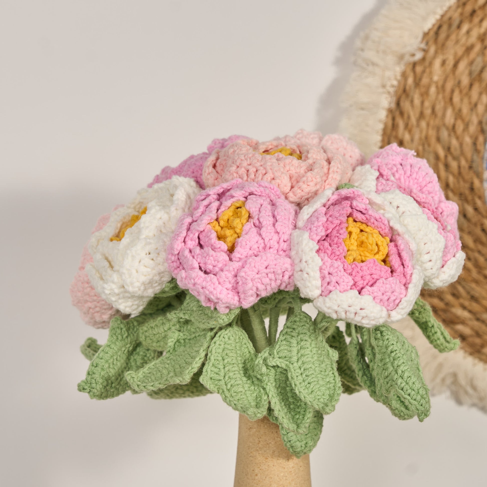 Handgefertigte gehäkelte Pfingstrosenblüten, Heimdekoration (12 Stück)