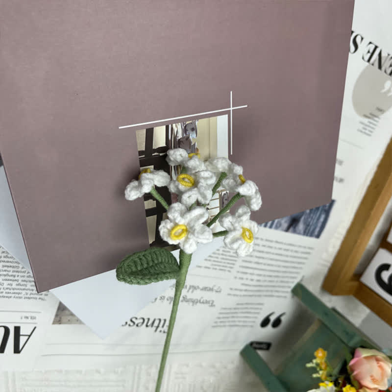 Der handgefertigte, gestrickte und gehäkelte Vergissmeinnicht-Strauß ist ein bezauberndes und zeitloses Andenken. Mit filigranen Häkeltechniken gefertigt, zeigt dieser Strauß kunstvolle Vergissmeinnicht-Blüten, die ewige Liebe und Erinnerungen symbolisieren. Perfekt als Geschenk oder als Wohndeko verleiht er jedem Raum einen Hauch von handgemachter Wärme und Eleganz. Robust und langlebig ist er eine schöne Alternative zu frischen Blumen.