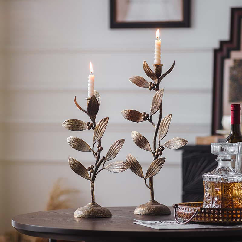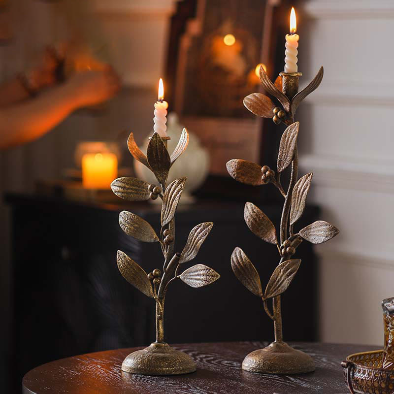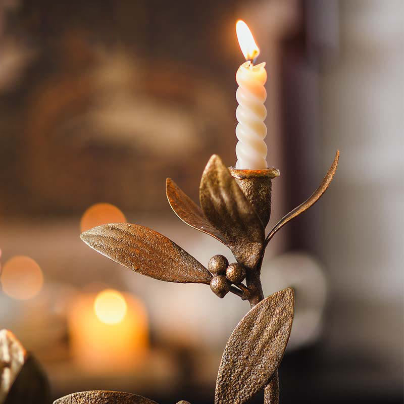 Kerzenhalter aus Eisen mit Pflanzen- und Blumenmotiv
