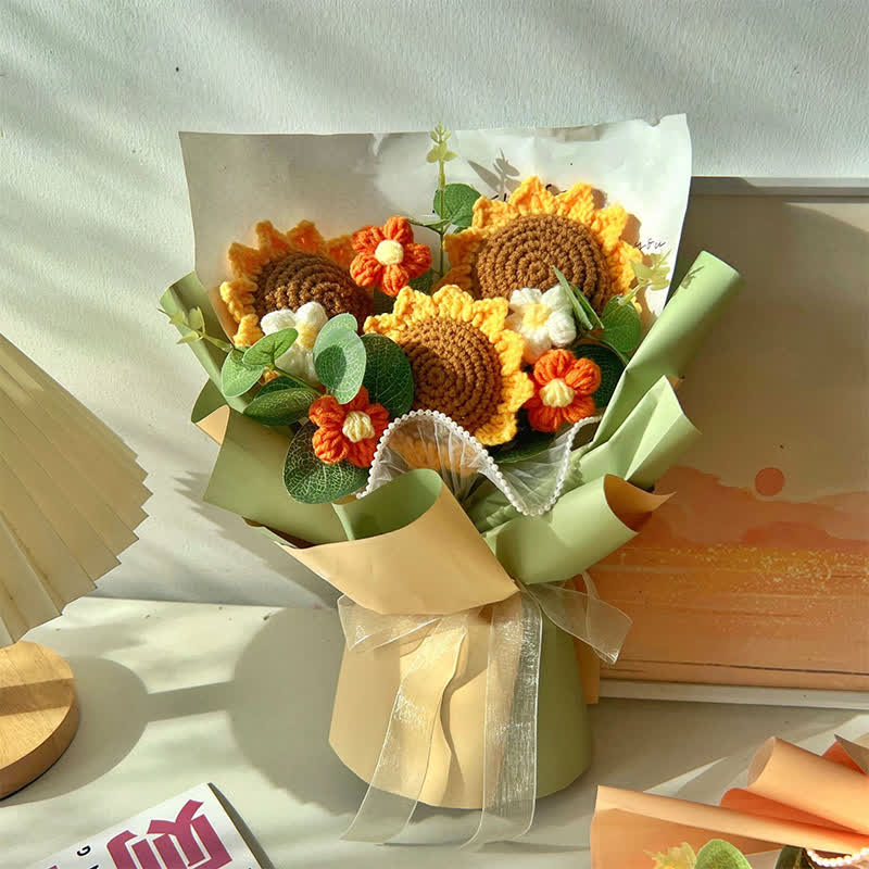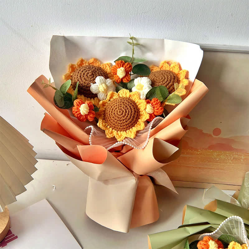 Kreativer handgemachter gestrickter Häkelrosenstrauß