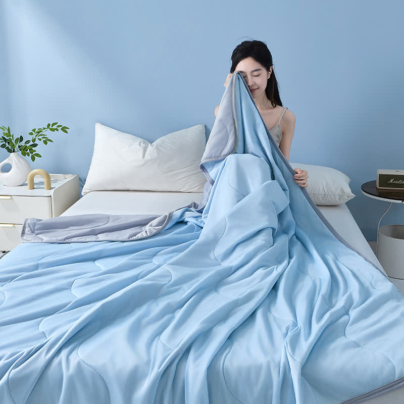 Kühlende Steppdecke mit einfarbiger Wellenstruktur