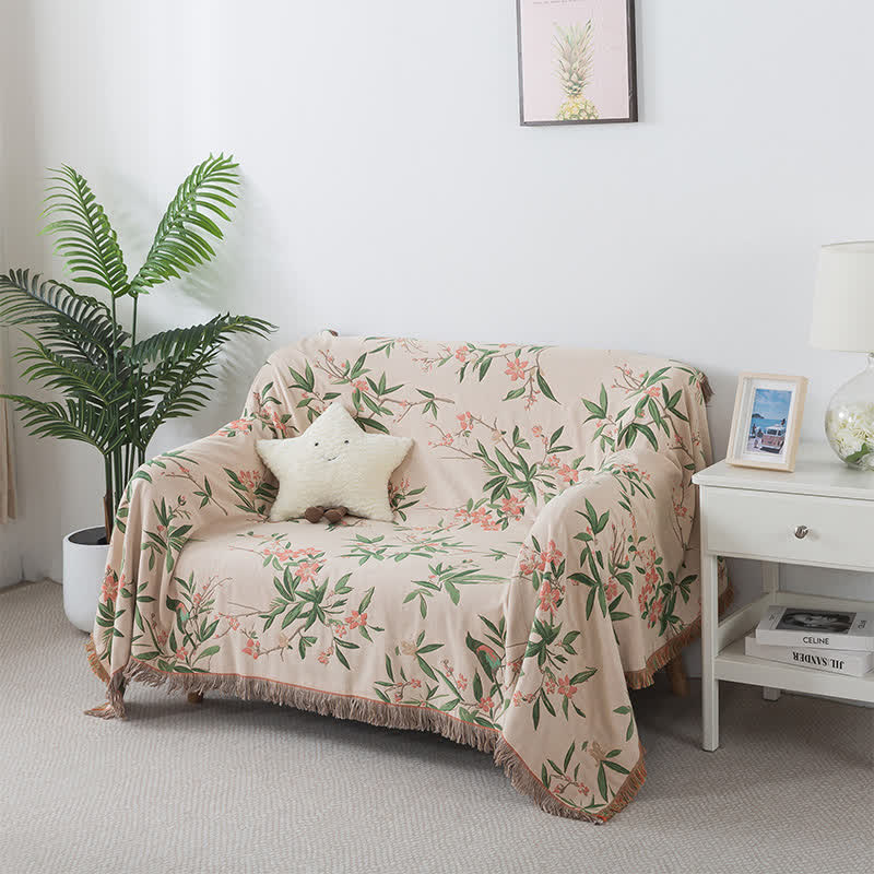 Diese Sofadecke aus luxuriöser Baumwollgaze besticht durch ihre exquisite Weichheit und eignet sich ideal als kuschelige Unterlage für Ihre Couch oder Ihr Bett. Mit aufwendigen Blumenmotiven und charmanten Quasten unterstreicht sie die Ästhetik und verleiht jedem Raum Eleganz. Sie eignet sich sowohl als Steppdecke als auch als Reisedecke und ist somit multifunktional einsetzbar.