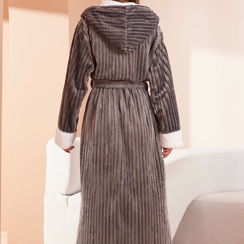 Langer Bademantel aus Fleece mit vertikaler Linienstruktur