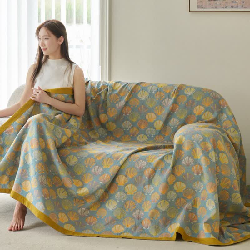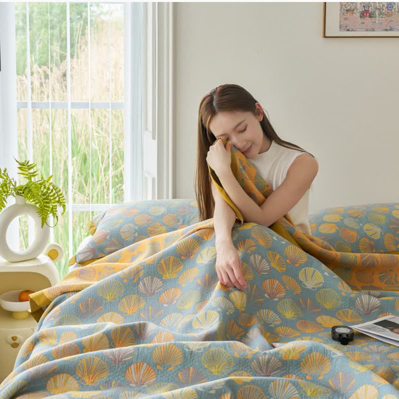 Leichte Steppdecke aus Baumwollgaze mit bunten Muscheln