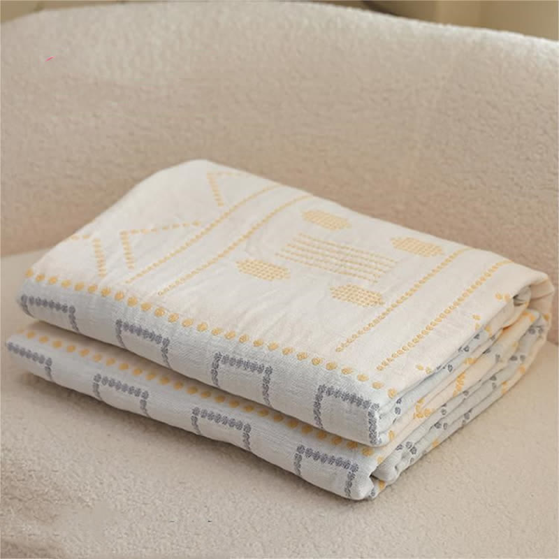 Diese Decke aus 100% Baumwolle ist für ihre Pilling- und Verformungsbeständigkeit bekannt. Ihr außergewöhnlicher Fall, ihre dreidimensionale Textur, ihre hautfreundlichen Eigenschaften und ihre hervorragende Atmungsaktivität machen sie besonders begehrenswert. Der geometrische Druck verleiht ihr zudem einen modischen und eleganten Touch und macht sie zu einer schlichten und dennoch stilvollen Wahl.