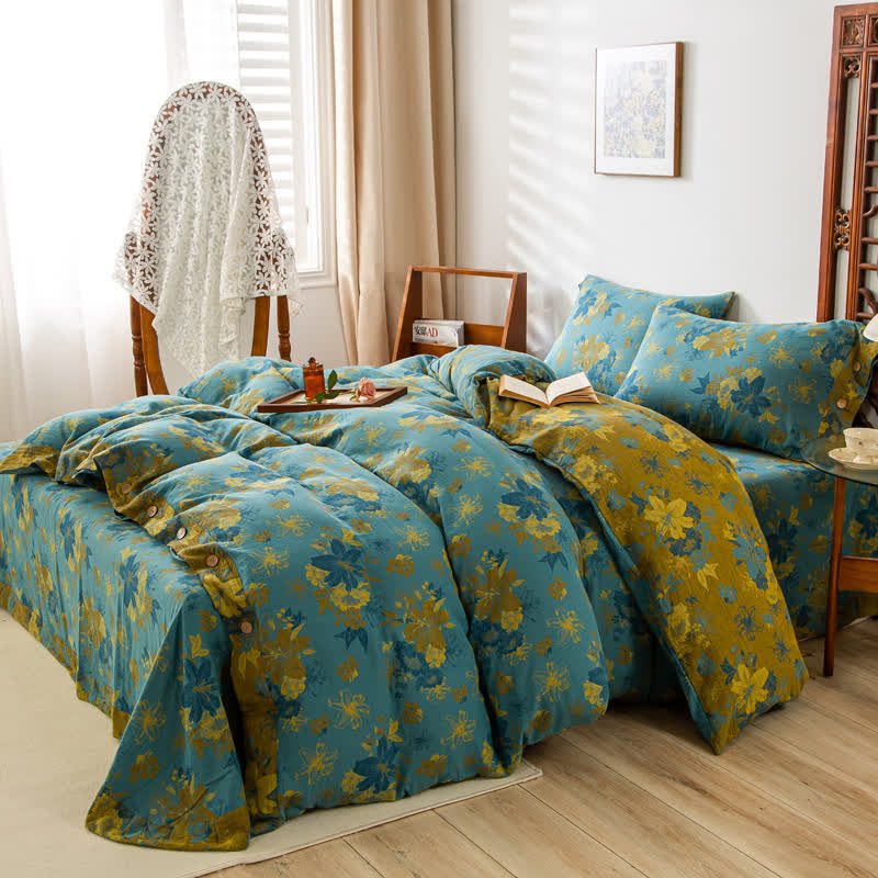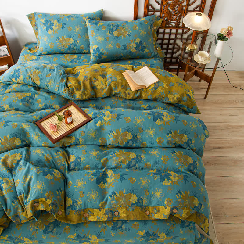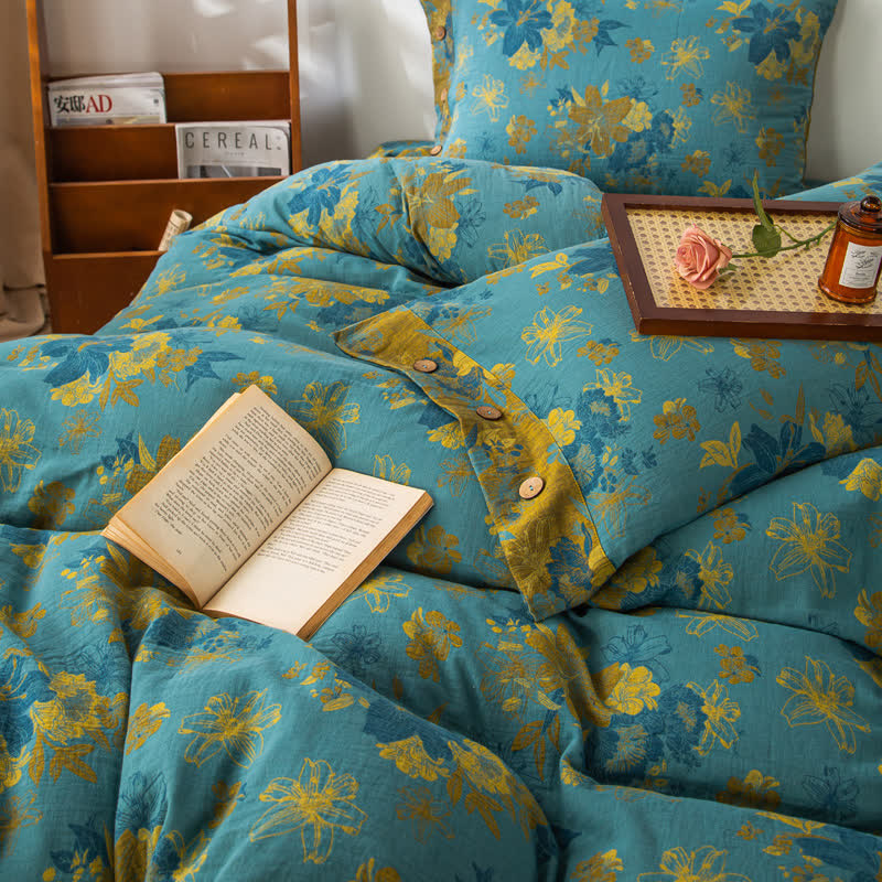 Lily Baumwollgaze-Bettwäscheset mit Knöpfen (4-teilig)