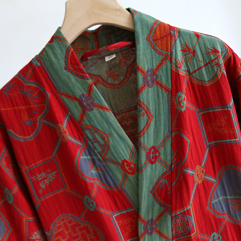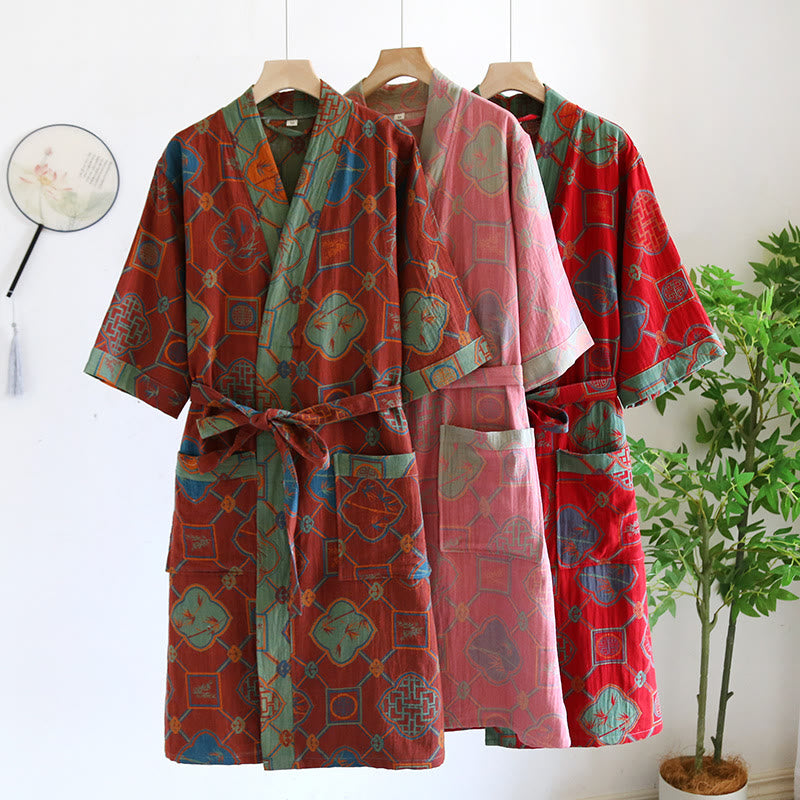 Lockerer Bademantel-Pyjama aus Baumwollgaze im Retro-Stil