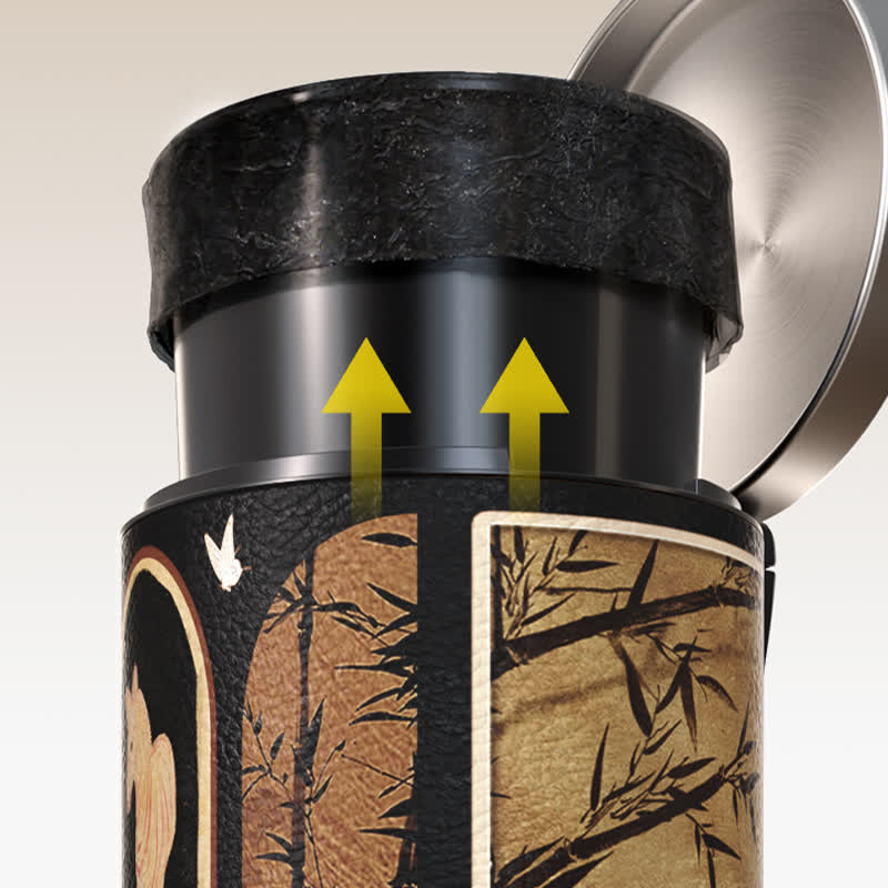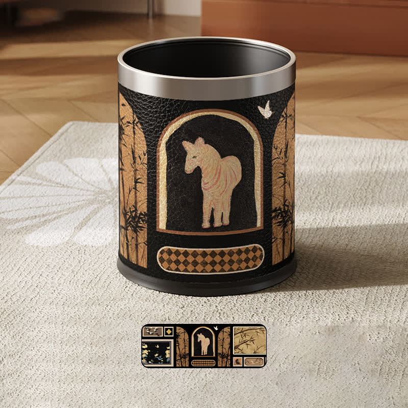Dieser Mülleimer verfügt über ein doppelwandiges Design, das Müllbeutel verbirgt und gleichzeitig ästhetisch ansprechend bleibt. Das Edelstahlgehäuse erhöht seine Langlebigkeit. Die Oberfläche ist fein verarbeitet und weist eine zarte, lederähnliche Textur auf, die ihn äußerst kratzfest macht, selbst gegen Katzenkrallen. Ein rutschfester Gummiring an der Unterseite sorgt für Stabilität, und das Fußpedal ermöglicht ein einfaches Öffnen ohne Handkontakt und sorgt so für Sauberkeit.