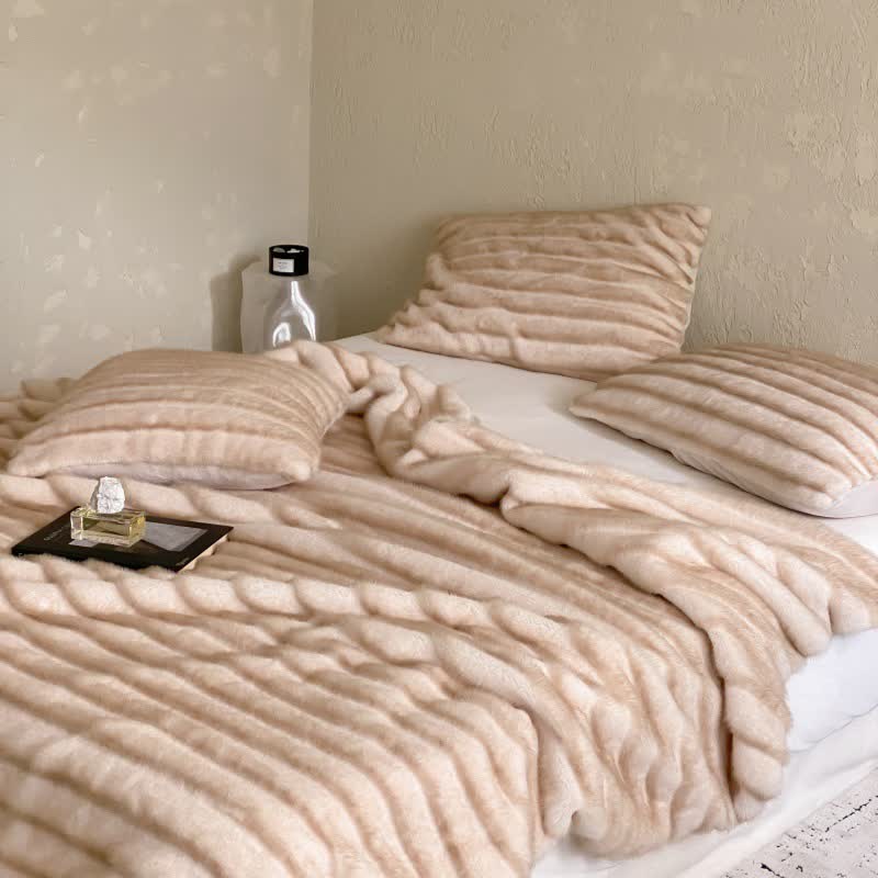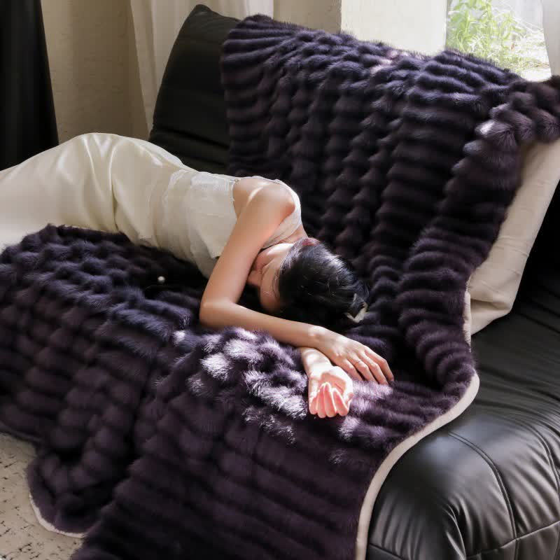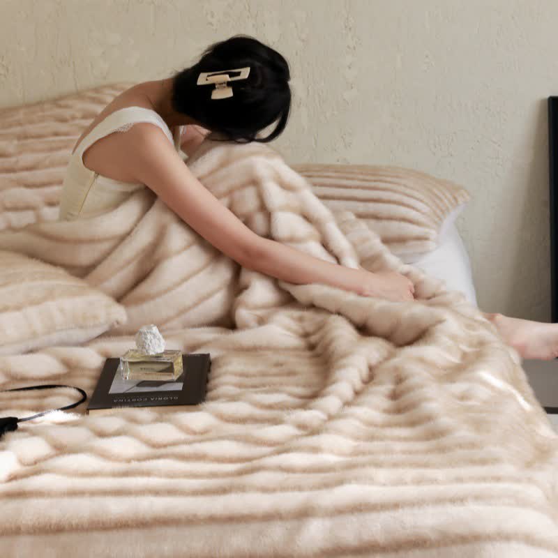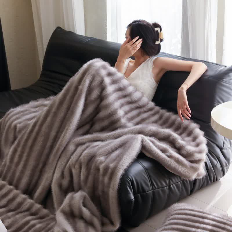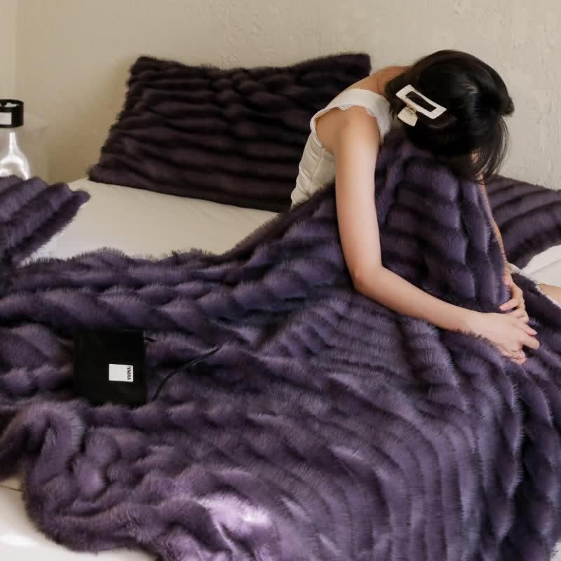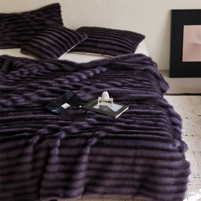 Moderne gestreifte Überwurfdecke aus Kunstfell