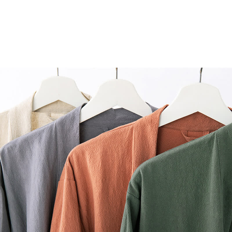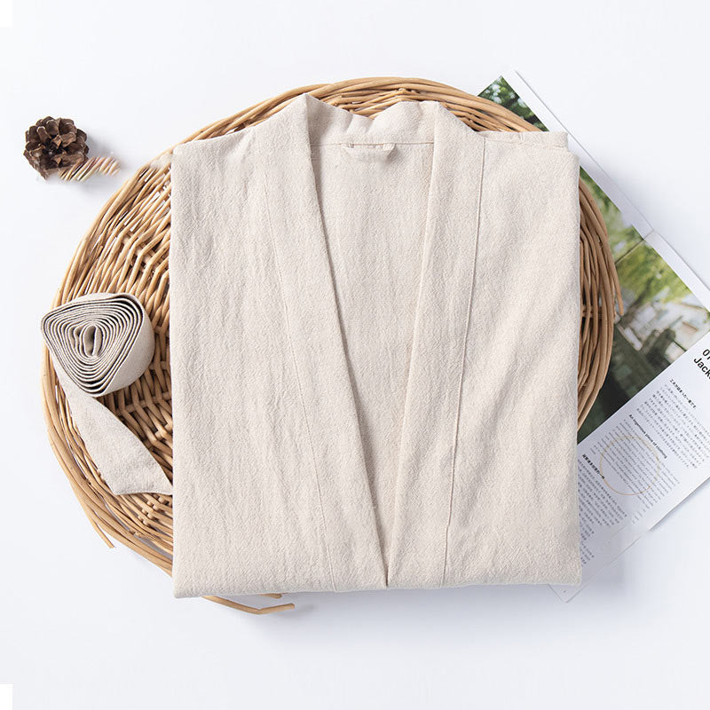 Ownkoti Weicher Bademantel mit V-Ausschnitt und Taschen
